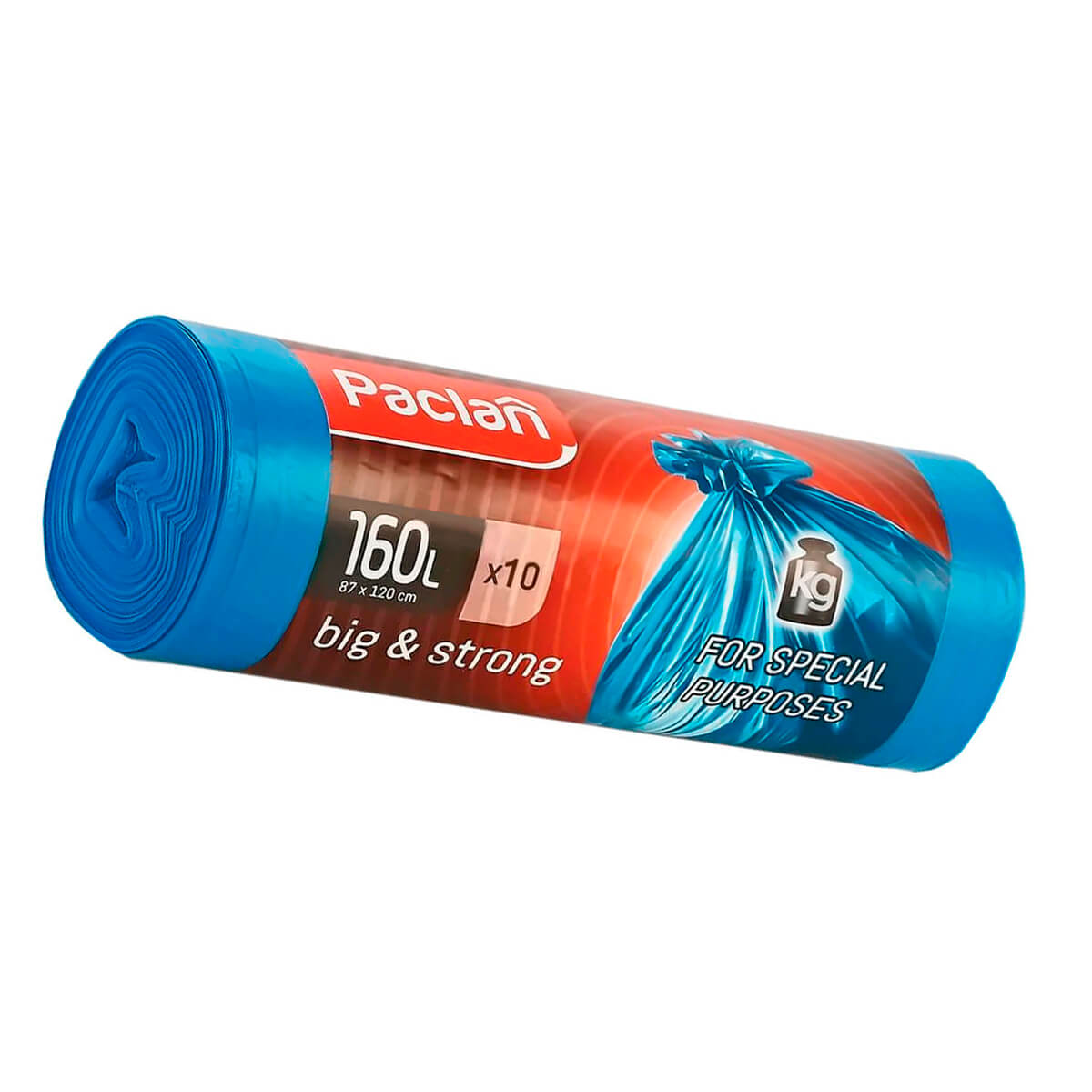 Мешки для мусора 160 л, синие, в рулоне 10 шт., ПВД, 21 мкм, 1200х870 мм, PACLAN Big&Strong, 604075