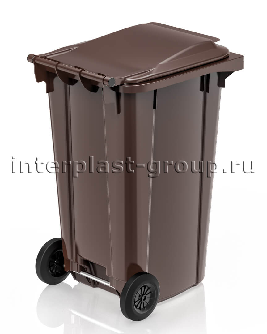 Коричневый мусорный контейнер уличный объемом 240 литров — прочный и долговечный евроконтейнер для мусора, предназначенный для бытовых отходов, биоотходов и органики. Он подходит для частных домов, дачных участков, офисов, предприятий и муниципальных территорий, обеспечивая удобный и гигиеничный сбор мусора.
