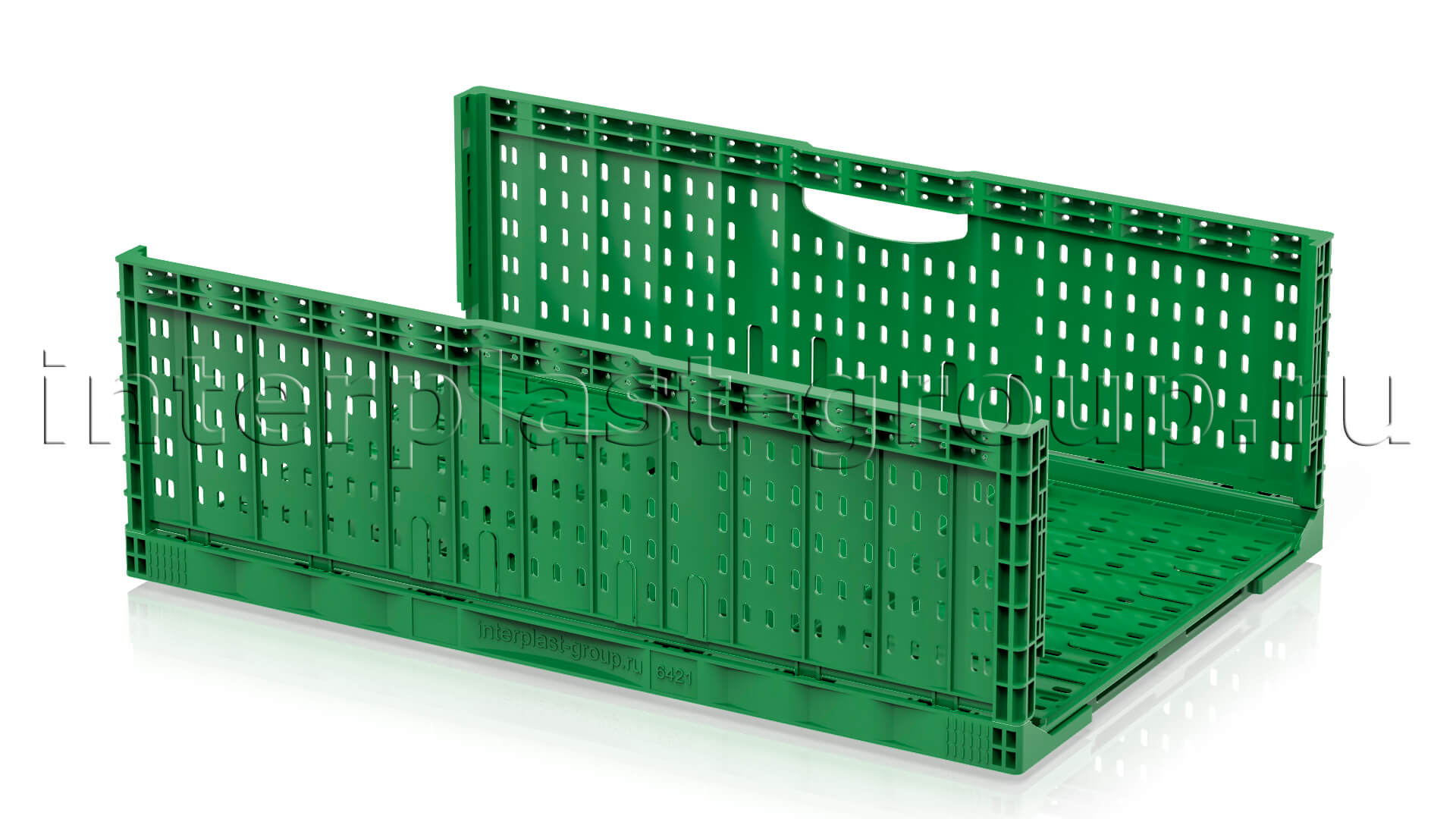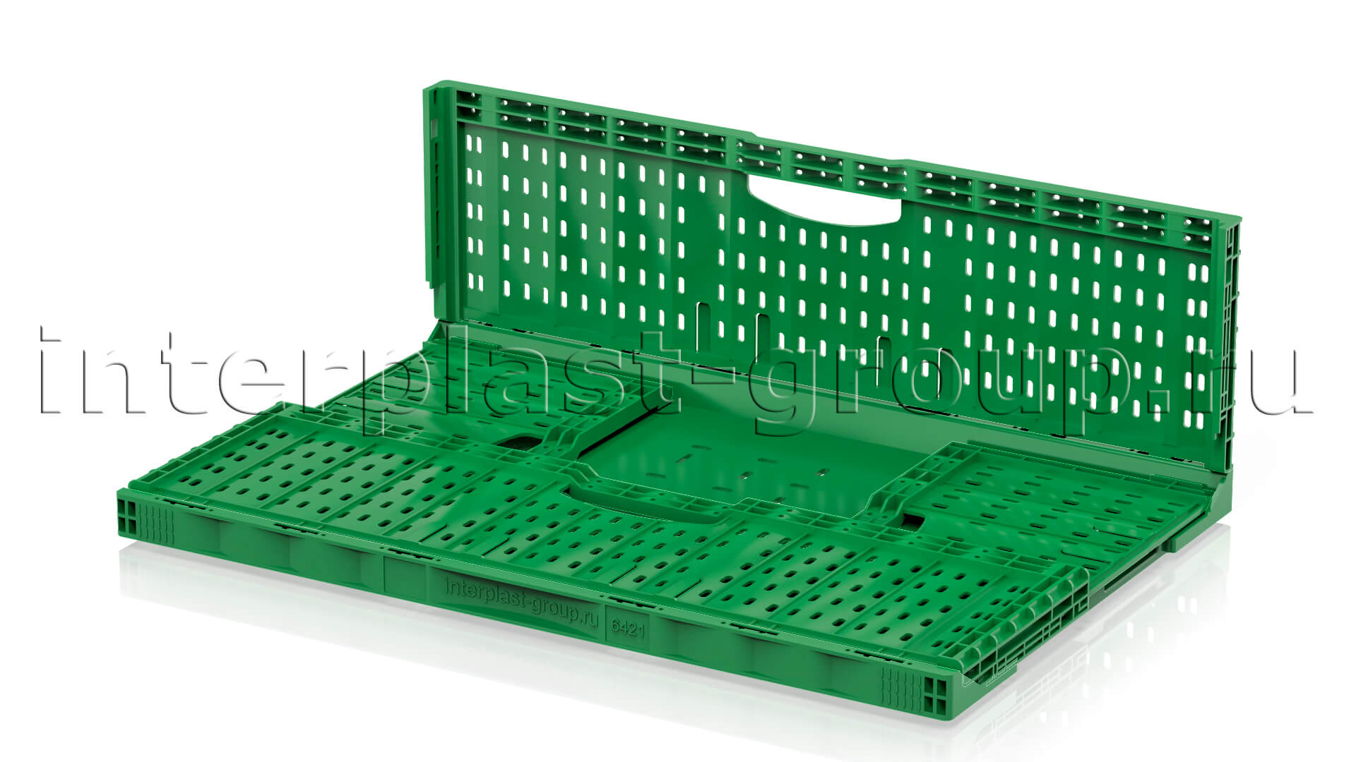 Складные ящики разработаны и спроектированы для хранения и перемещения плодо-овощных культур как внутри производства, так и между торговыми точками и складами. Благодаря функции складывания значительно экономят место при использовании в качестве возвратной тары. Перфорированные стенки обеспечивают сохранение свежести и сочность продуктов перфорации абсолютно на всех стадиях логистики. Штабелируются на паллетах 1200х1000 и 1200х800.