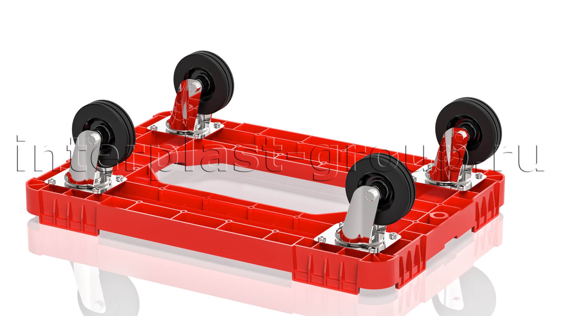 Тележка пластиковая с отверстием без тормозов красная в Новокузнецке