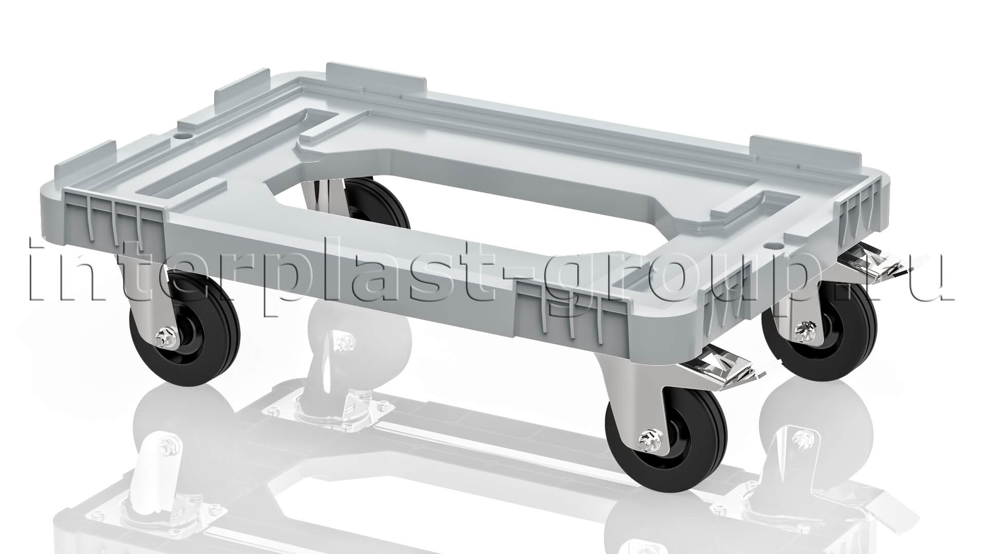Тележка пластиковая с отверстием 2 колеса с тормозом усиленная серая в Новокузнецке