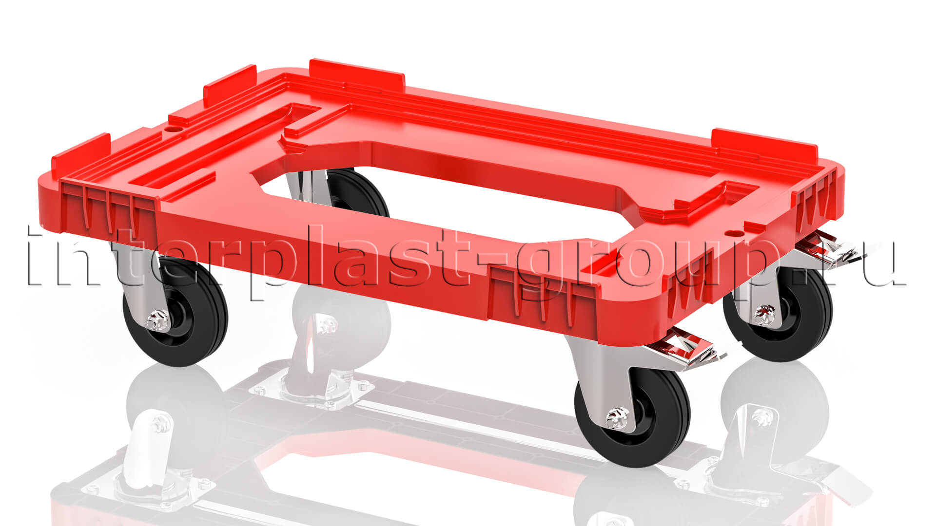 Тележка пластиковая с отверстием 2 колеса с тормозом усиленная красная в Новокузнецке