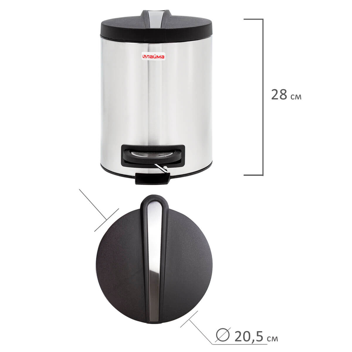С вместительностью 5 литров, он идеально подходит для помещений с невысокой проходимостью. Педаль для открывания обеспечивает максимальное удобство использования, а плотно прилегающая крышка надёжно изолирует запахи. Съемное внутреннее пластиковое ведро с удобной ручкой для извлечения делает процесс утилизации максимально простым.