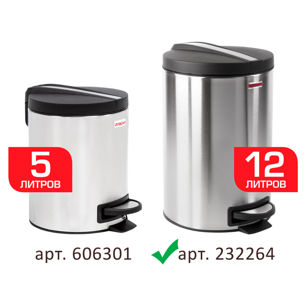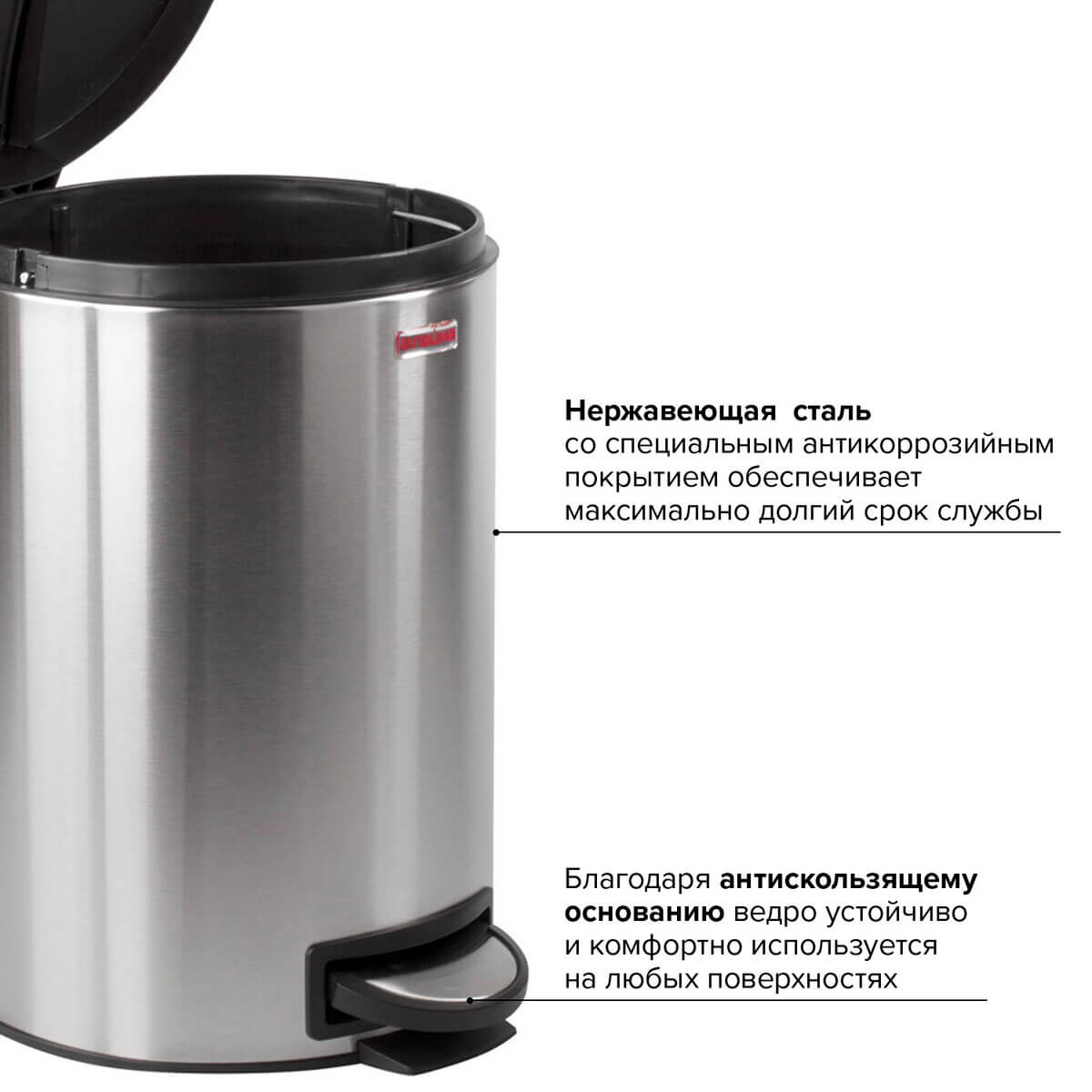 Ведро-контейнер для мусора (урна) с педалью LAIMA Modern, 12 л, матовое, нержавеющая сталь, со съемным внутренним ведром в Новокузнецке