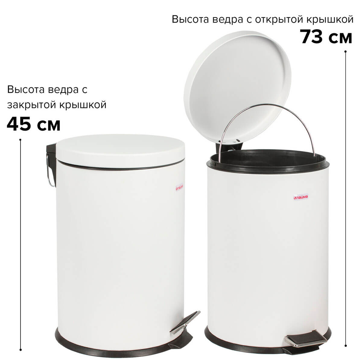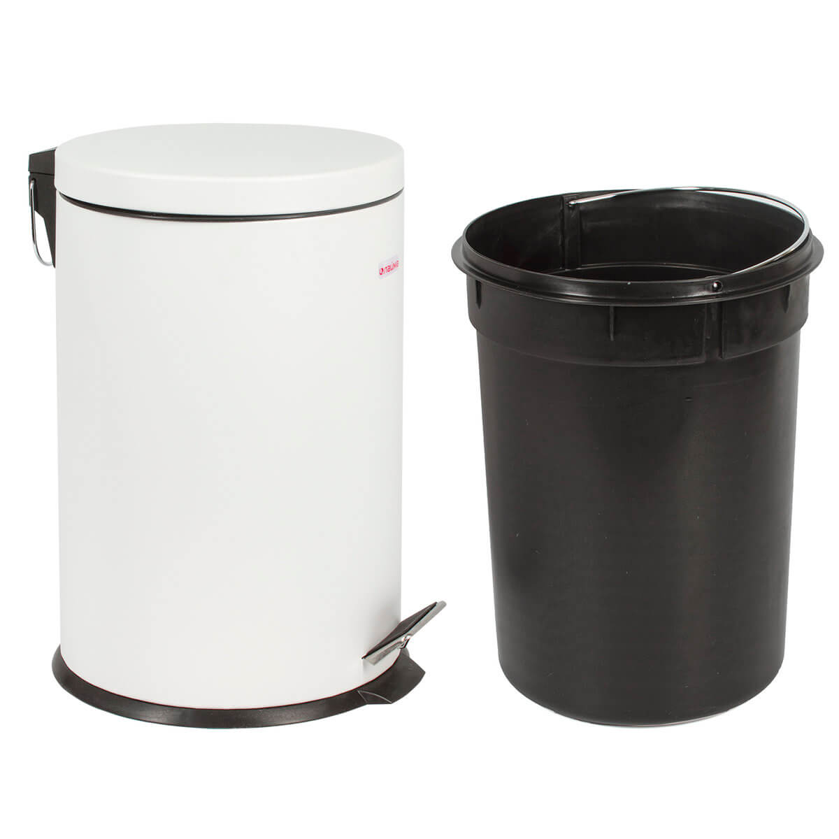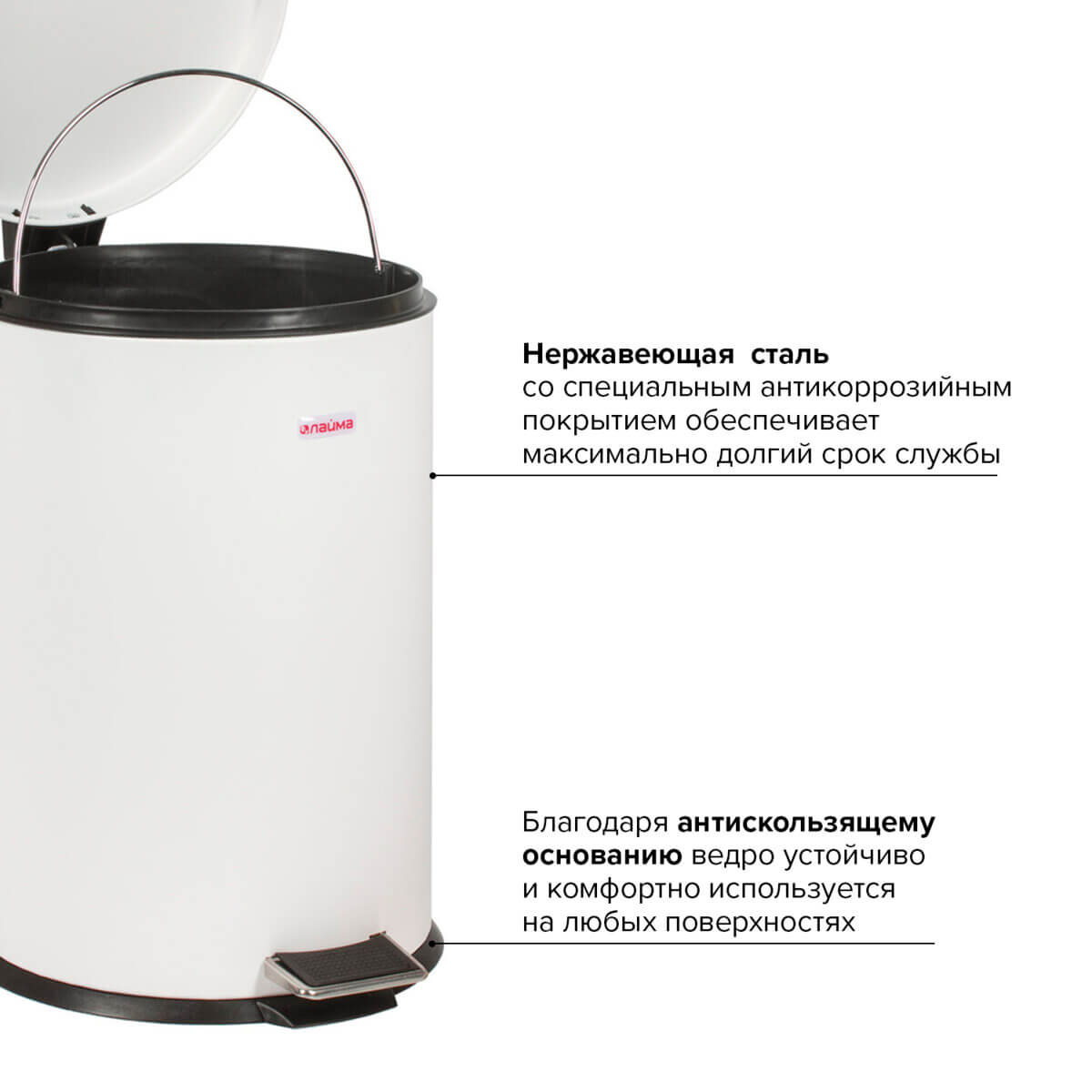 Ведро-контейнер для мусора (урна) с педалью LAIMA Classic, 20 л, белое, глянцевое, металл, со съемным внутренним ведром